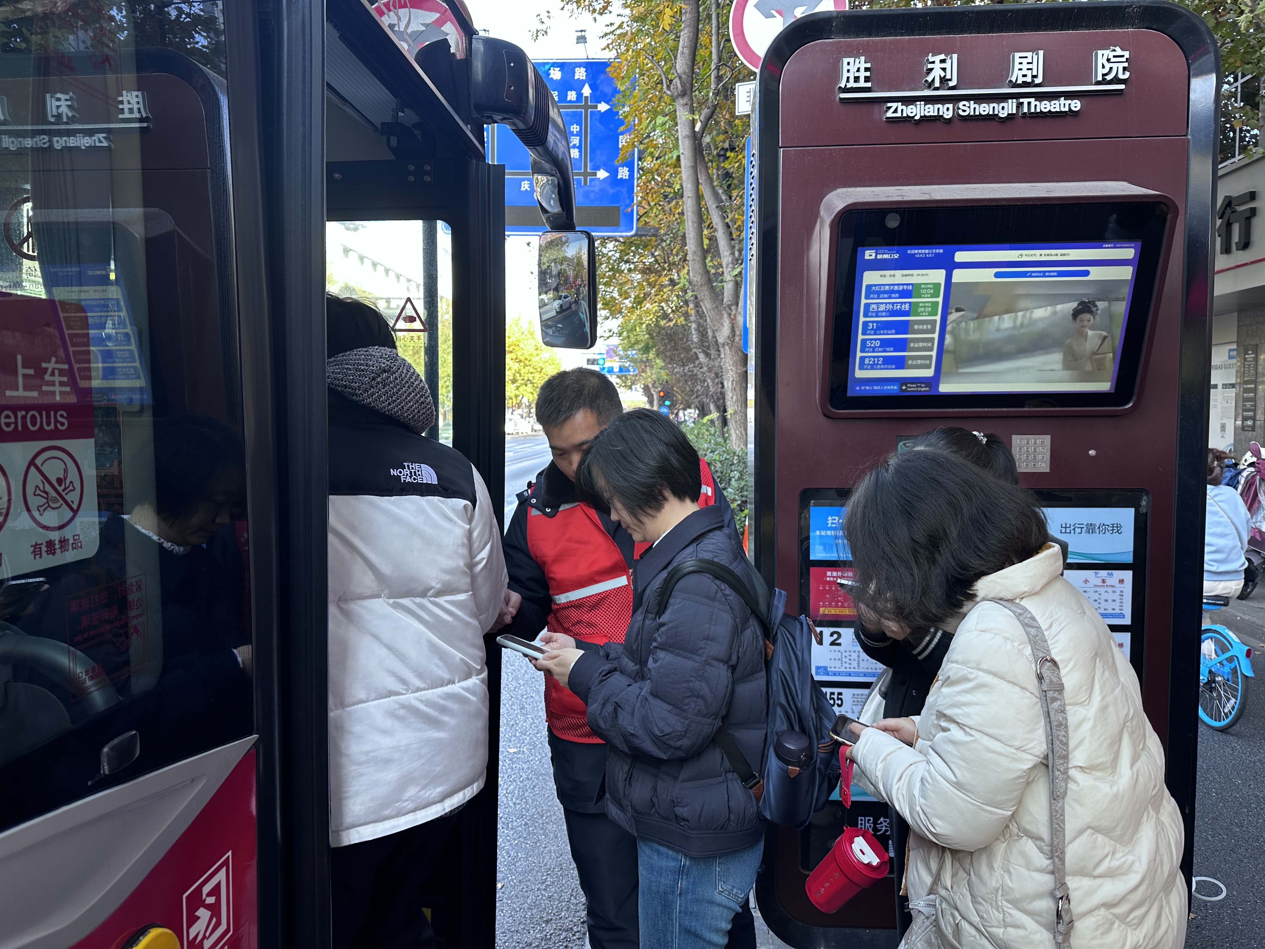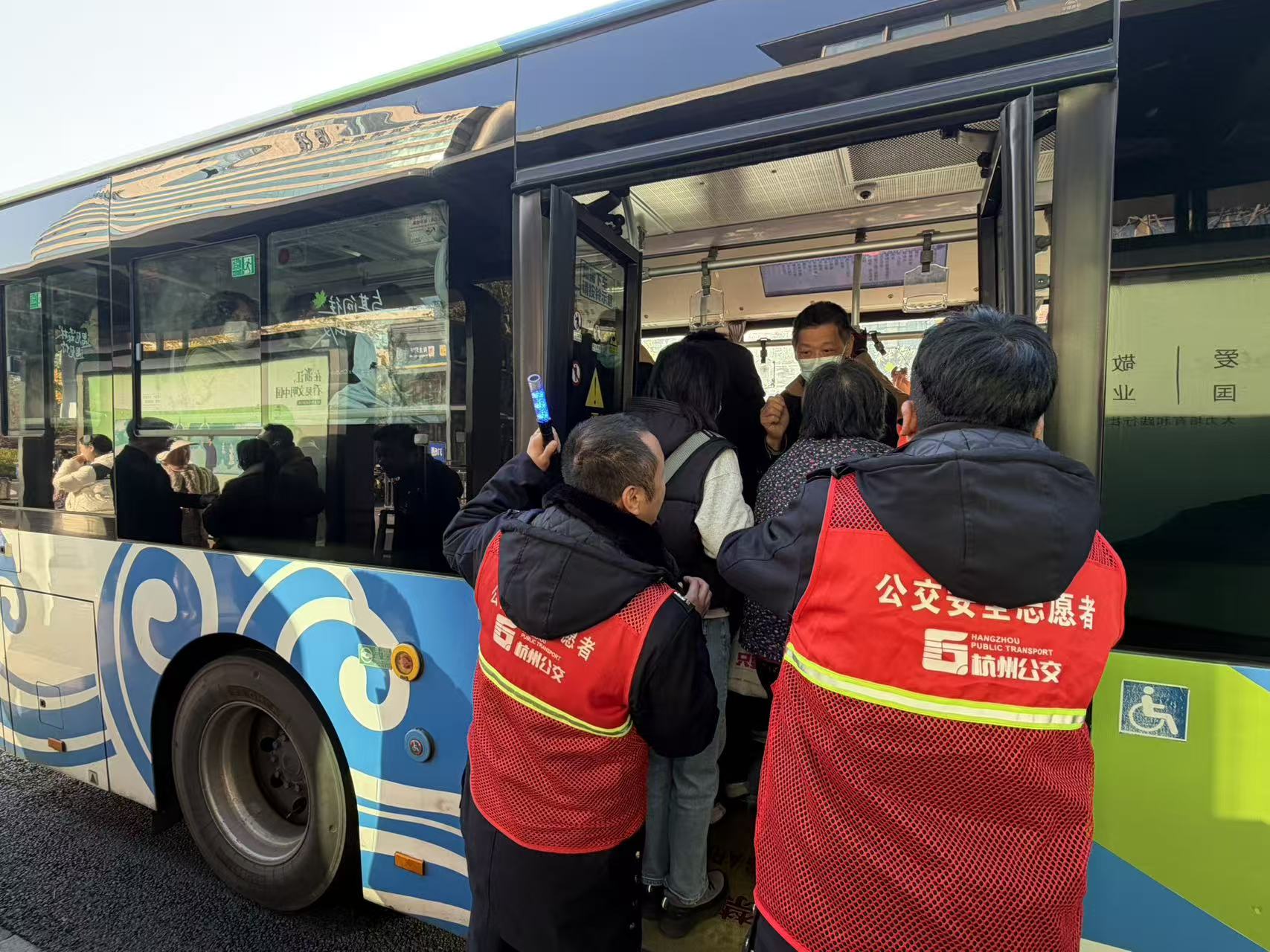 每一条顺畅的出行线路背后,都离不开公交人坚守的身影。在灵隐周边的灵隐公交总站、灵隐路32号换乘中心、灵隐东等核心站点,身着志愿者红马甲的公交人始终坚守岗位,成为客流中“最安心”的存在。他们耐心解答游客的线路咨询,细致告知景区游览与返程乘车注意事项,同时有序引导乘客排队候车、安全上下车,主动帮扶老人,帮抬婴儿车,用细致入微的服务化解市民游客的出行顾虑。从外围接驳点的运力协调,到核心枢纽的换乘引导,再到景区周边的现场管控,杭州公交将系统性规划与精细化运营深度融合,让“优质服务”贯穿游客出行的每一个环节。
