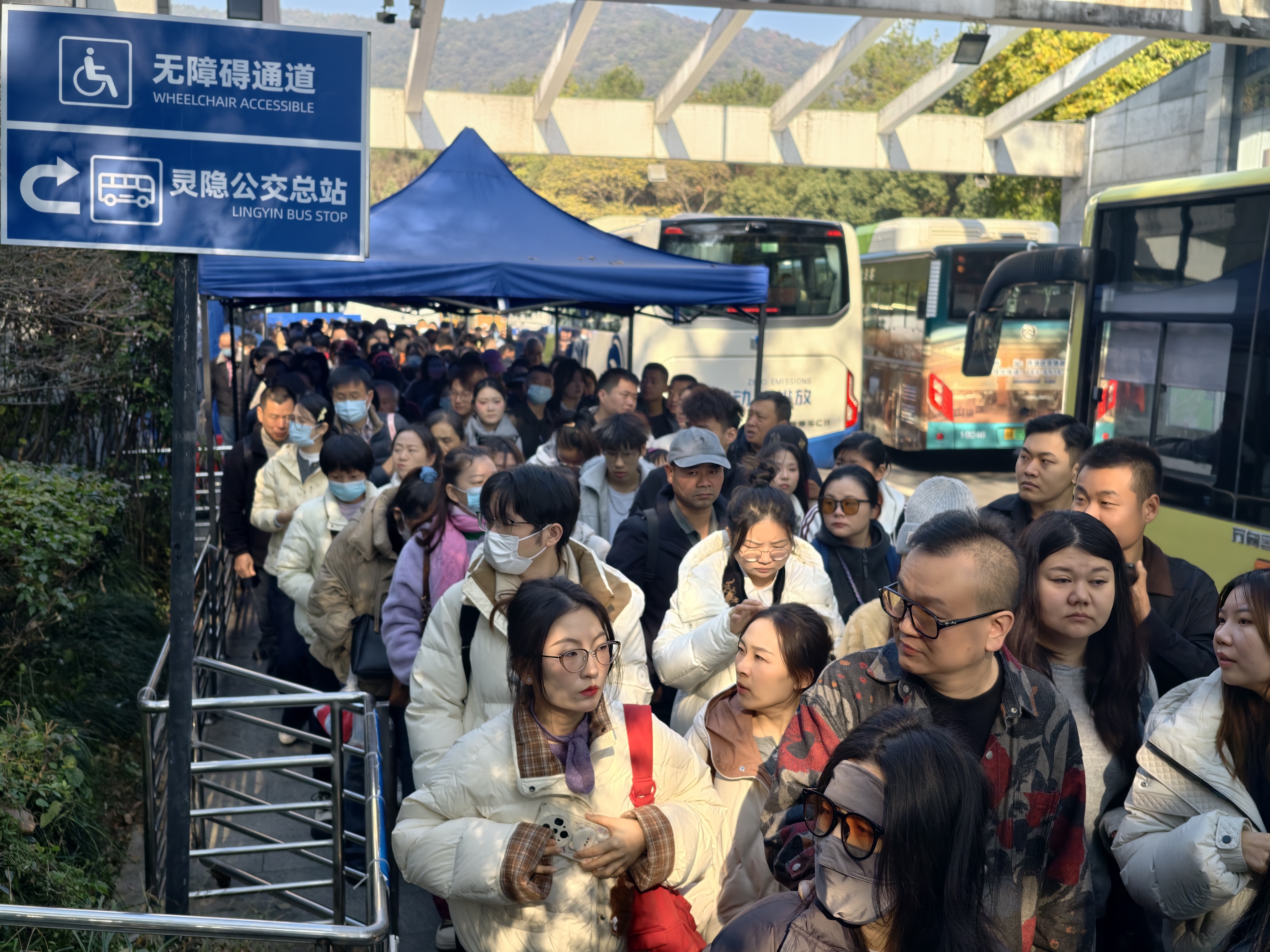 灵隐景区“双免”政策实施后的首个双休日(12月6日至7日),灵隐景区相关公交线路累计运送乘客27.5万人次,为“双免”(双休日)前的132%。